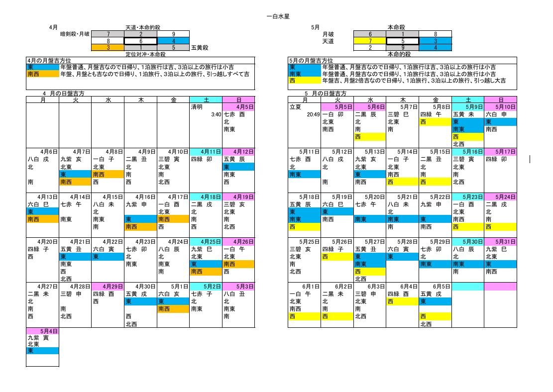 ・毎日の吉方位カレンダー