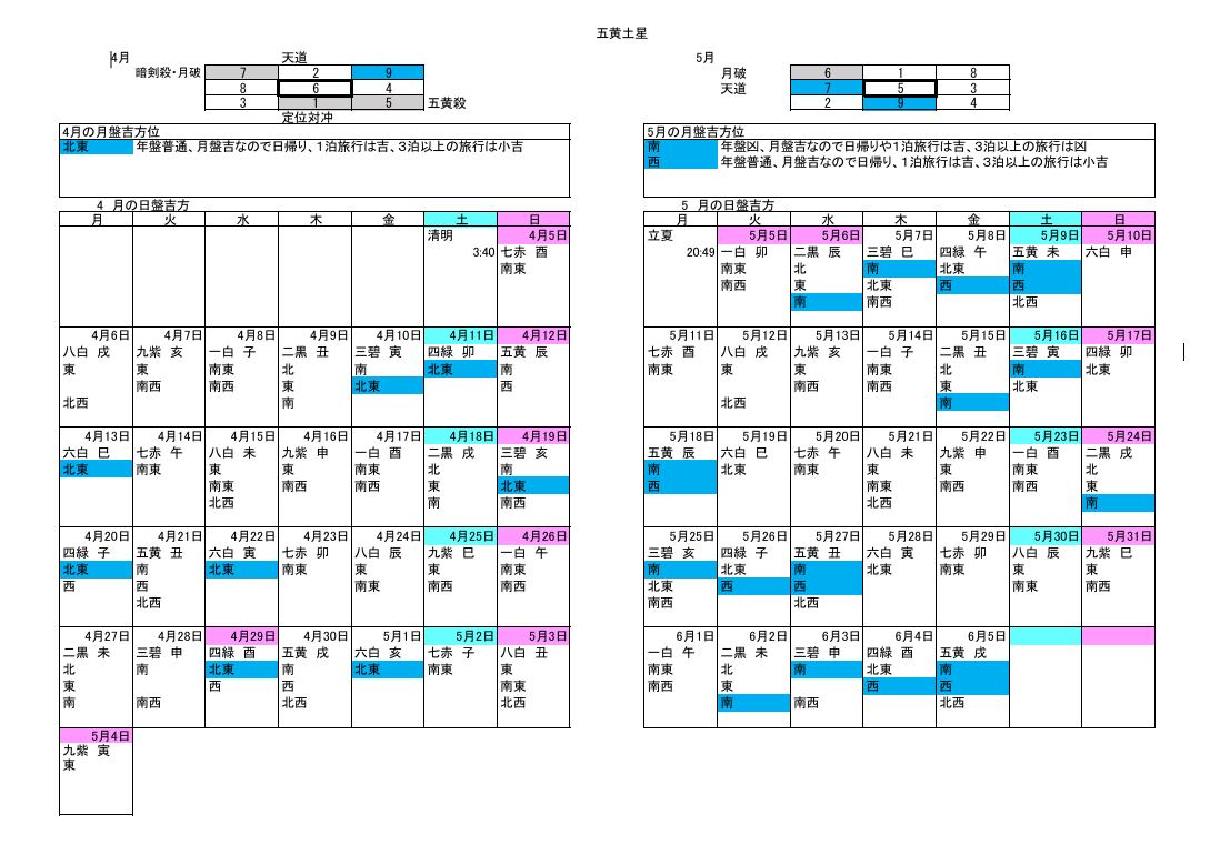 ・毎日の吉方位カレンダー
